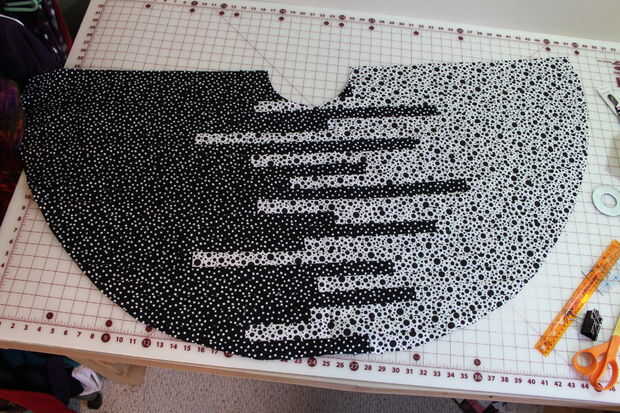 Tip *** si se forro su falda, cortar un frente y la parte posterior de la tela de la guarnición ahora.