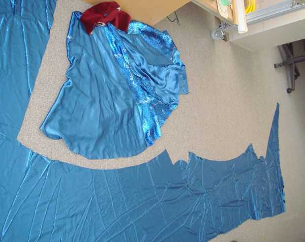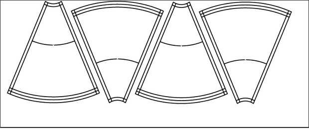 Pone su patrón de panel plano sobre la tela, luego trace una línea alrededor del exterior con tiza o un rotulador de tela soluble en agua. Corte a lo largo de sus líneas de patrón. Para el siguiente panel, voltear el patrón alrededor por lo que están alternando extremos ancho y estrecho del panel a lo largo de la longitud de la tela (ver ilustración). A residuos menos yardas de esta manera.