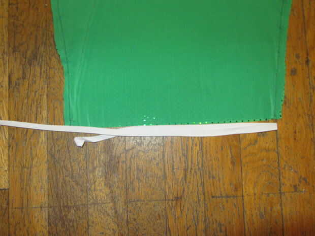 Coser el elástico en la parte superior de la cola. Como coser el elástico, no se olvide de Tire firmemente para que la cola se crujir encima de.