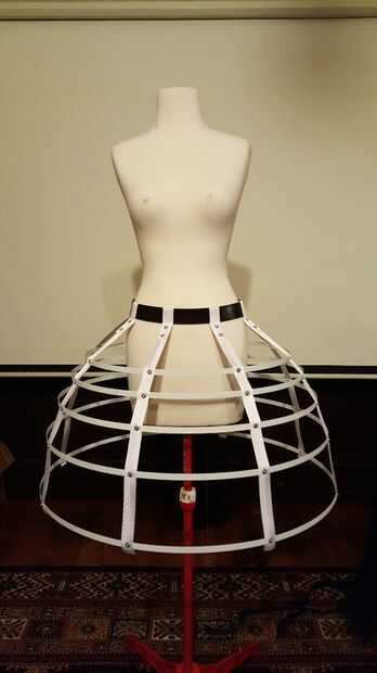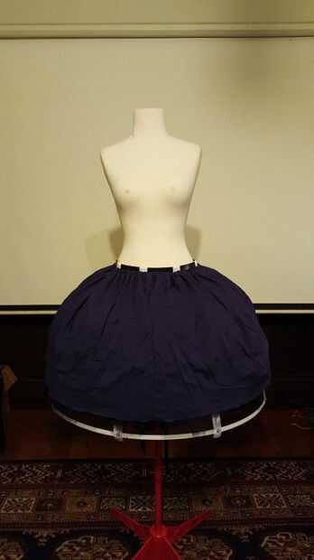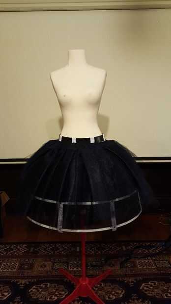Basado en lo que he leído en varias webs más de falda, enaguas son esenciales. Evitan que los aros que muestra a través de la topskirt. Para el mio, hice una capa esponjosa primero mediante un cilindro de tela ceñida con una cinta en la parte superior de la guarnición. Para eso, os adjunto un montón de para hacer la enagua de la crinolina (segunda foto). Más tarde me di cuenta de que las luces de hadas en el interior de la falda superior quedó atrapadas en la crinolina, así que hice una falda de forro más entre los dos (tercera imagen).