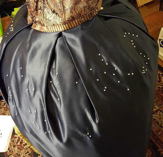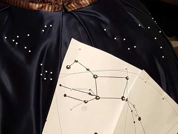 Encontré una imagen de cada constelación y cayó a ésos en mi diseño de falda de Illustrator. Funcionó bien para tener 1 constelación en cada sección de la falda (entre los pliegues o encima de ellos) así que nada estaba en una doble línea.