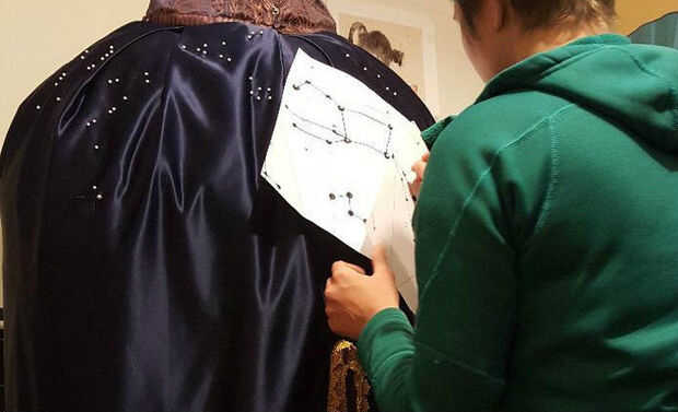 Adobe Illustrator y otros programas de dibujo trabajan mucho para crear un plano de donde irá sus constelaciones en la falda. Pensé durante mucho tiempo sobre si quería hacer un cielo realista, como en la hermosa falda de BelleLindsay, o a jugar con las constelaciones. Definitivamente quería incluir los más significativos para mí: mi signo (Piscis), los de mi familia (Leo, Escorpio y Virgo), algunos familiares (Orion, Hércules, Cygnus, Andrómeda, Casiopea, Osa mayor, Draco y Pegasus). Al final, hice una aproximación del cielo norte, además de algunas constelaciones del cielo nocturno del sur, además de que creado y agregado más adelante, ver si puede detectarlo!