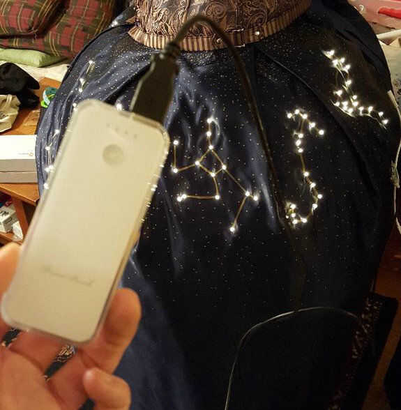 Uno de mis momentos favoritos en este proyecto fue ver la falda totalmente iluminada por primera vez. Tardó tantas horas, tantos pasos y va bien, que fue un alivio ver que valió la pena todo. En este punto, paso atrás y admirar tu trabajo! Coge a un amigo, vecino, o gato y mostrarles! Publicar una foto en internet!