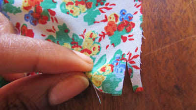 En lugar de dobladillo de la tela exterior, hacer una incisión de 1 cm en el ancho de la tela.