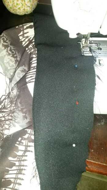 Después de coser la banda de la cintura cubrió a la banda a la falda y coser las 2 piezas juntas. Que bonitos también la parte inferior un 1/2 pulgada.