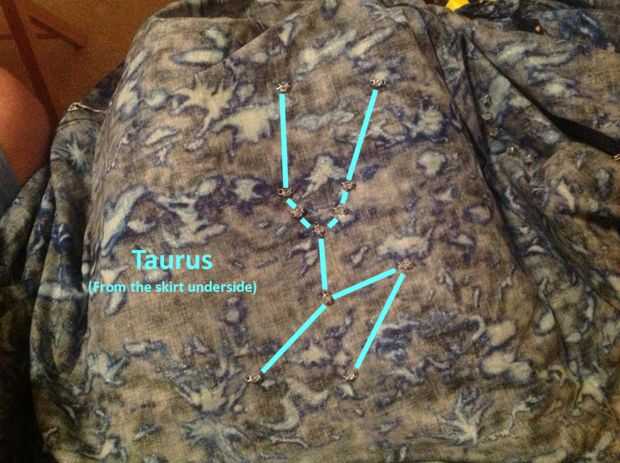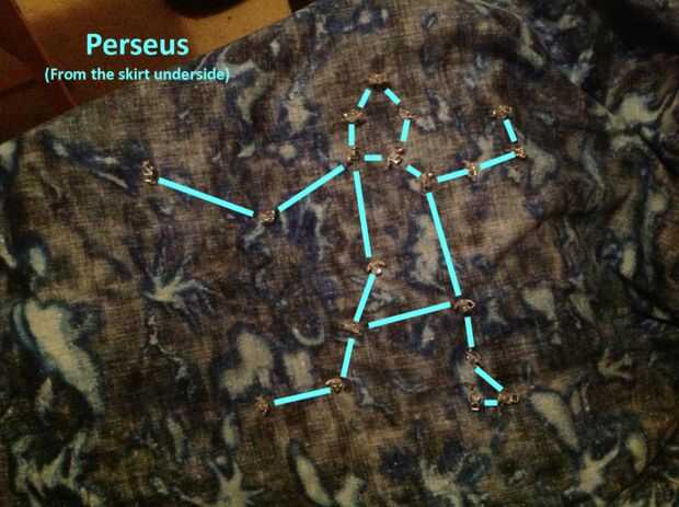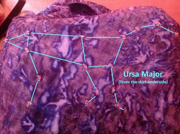 Para bola este año de Edwardian, quería crear un vestido que recuerda a un globo de noche vintage. Una falda del aro crea la estructura de luces iluminará las constelaciones y un monedero (a base de mi pieza de práctica) completa el atuendo. Estoy mu