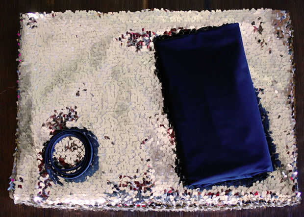- Dos yardas de tela con lentejuelas (compré mina de Etsy)