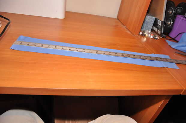 3) corte un trozo de entretela que es 2" de ancho y la longitud de la cintura + 3" de largo.