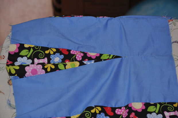 Así que aquí, cosí por la parte superior a la falda para 4" abajo.