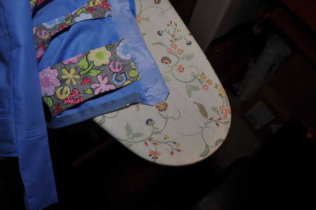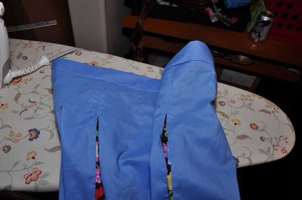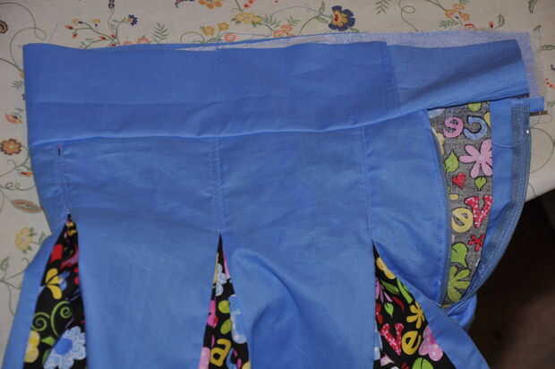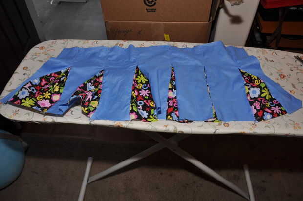 9) acabado todas las costuras y dobladillo de la falda con un dobladillo estrecho.