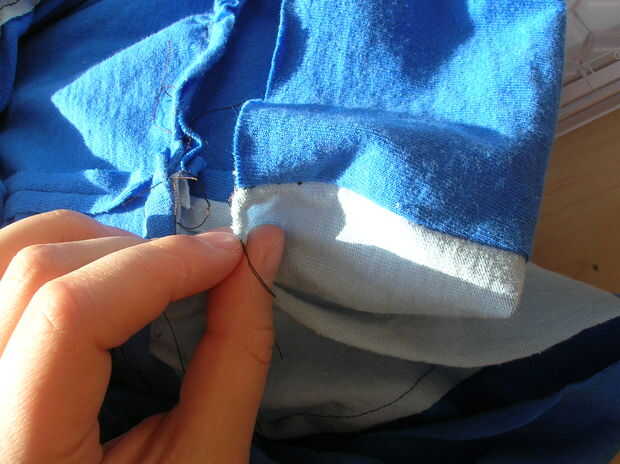 Doble en la cintura en el interior de la falda (ver fotos). El borde de la fila superior sólo debe cubrir la costura se reunieron primera. Coser.