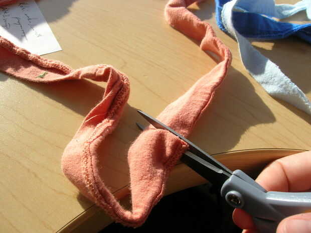 Corte el bucle del dobladillo para que sea una larga cinta de dobladillo.