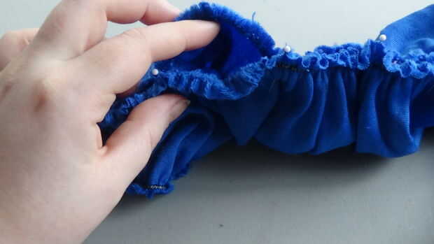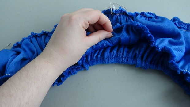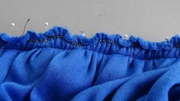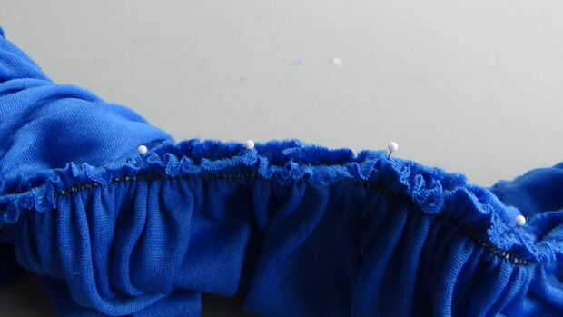 Coincidir la parte superior del segundo nivel con la parte inferior de la primera y prender todo junto. Si encuentras que una vez que han trabajado alrededor de todo el camino tienes una burbuja de tela solo tome algunos de los pasadores y extienda a la tela extra por lo que pone en su mayoría plano. Usted podría terminar siendo una con unos pliegues pero deben ser pequeñas y debido a las colmenas será invisibles. Luego coser la costura junto a una media pulgada de margen de costura.