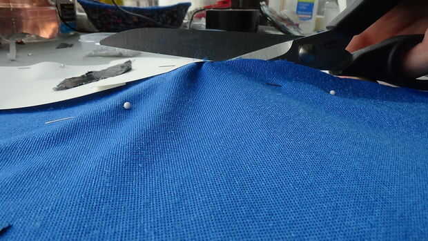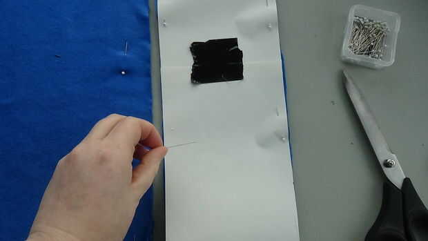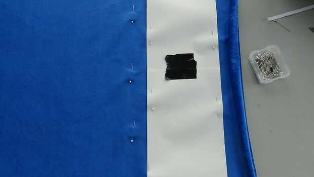 Luego establecer su pieza en la tela como cerca de uno de ancho bordes como sea posible, alfileres en su lugar y fijar a la tela al lado de él todavía. Luego cortar la tira. Tomar los pernos de la pieza y luego el perno patrón en la tela contra el borde recto que ha creado. Repite este patrón hasta que la totalidad de la tela es de tiras.