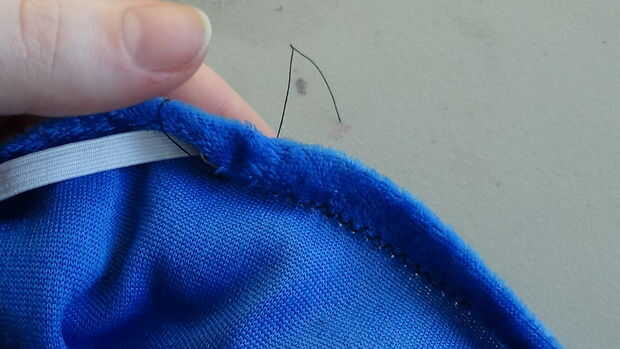 Luego coloque el elástico en la carcasa y cierre la cubierta con pernos. Coser el cuerpo con la misma puntada de zag zig que utilizas para hacerlo. Incluso los volantes en la parte superior de la falda antes de continuar.
