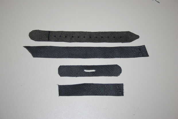 Para esta falda, usé 5/8" hebillas, cortar dos tiras de cuero de 5/8" x 3,5" para garantizar las hebillas, y cortar tiras de 2 5/8" x 8" para las bandas.