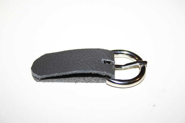 Para las piezas de la hebilla, doblar por la mitad alrededor de los extremos abiertos y hacer cortes paralelos de 1/4" 2 al redil. Despliegue y utilice tijeras pequeñas (como las tijeras de hilo), o un cuchillo x-acto para completar los semicírculos en los extremos de los cortes, como en la foto. Añadir la hebilla como se indica, y aproximadamente 1/8" desde el extremo de la ranura, coser una puntada recta para garantizar el cierre de la piel. Si se utiliza una máquina de coser, un pie de cremallera sería ideal.