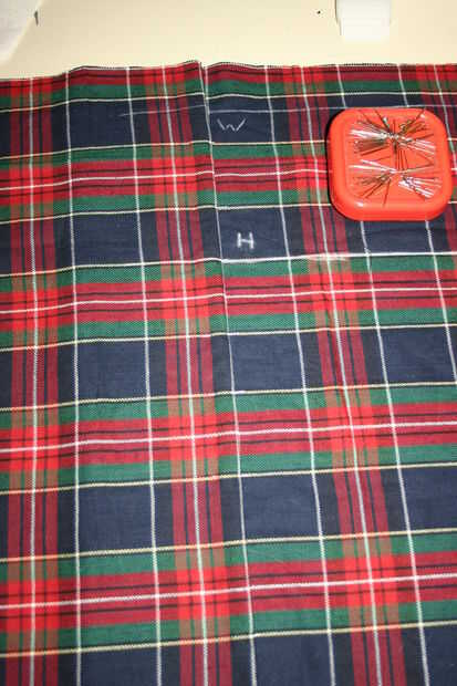 Ahora, inclinación a la tela para que esta marca está en línea con el resto del faldón delantero. Tenga en cuenta que el borde superior debe permanecer recto. La tela extra irá en el bajo plisado. (Imágenes 5 y 6)