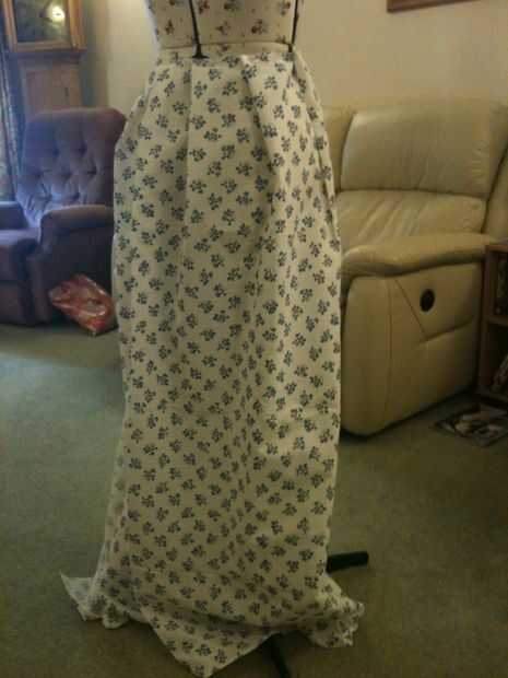 he decidido no molestar usa un patrón para falda, porque pensé que sería bastante sencillo. Así que usando mi maniquí, cubrió a la longitud de la tela en pliegues alrededor de la cintura (usted puede fácilmente hacer esto en ti mismo sin necesidad de utilizar un maniquí). Echa un vistazo a la imagen para ver lo que me refiero.