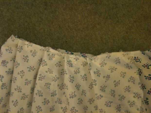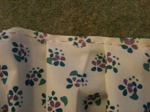 Por lo que se necesita coser todo alrededor de la cintura de la falda - viro (basted) mina con un punto de funcionamiento (hilo rojo).