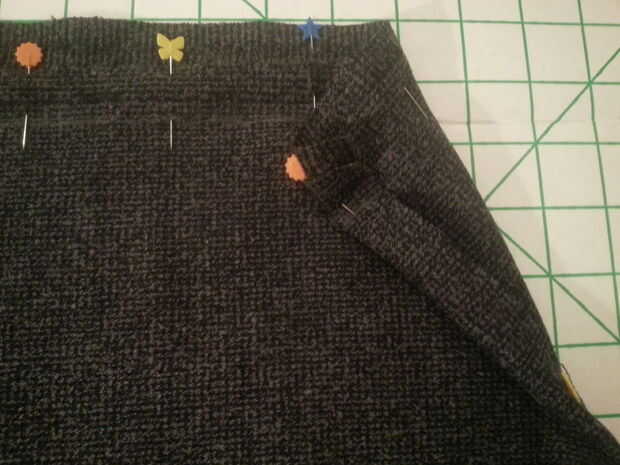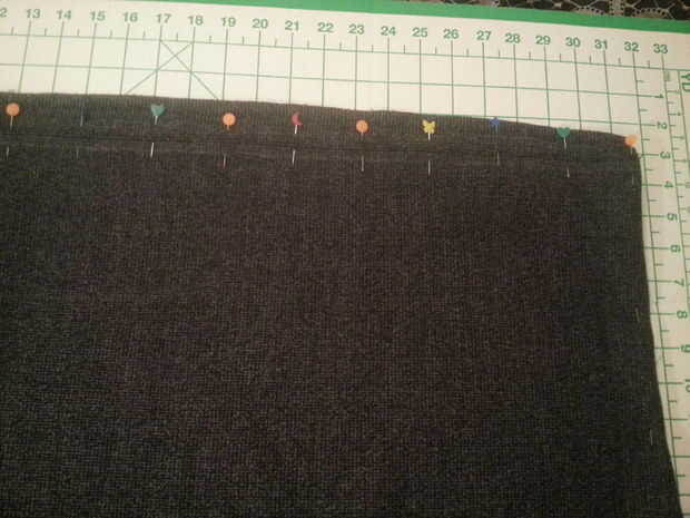 OK lo primero que hice fue medir mi cintura y añade una pulgada de margen de costura. Coser con un margen de costura de media pulgada y añadir la cremallera en la espalda necesitaba una media pulgada en ambos lados, así que añadido otra pulgada. He presentado mi tela y cubrió a cada dos pulgadas a lo largo del borde de salvamento. El borde no era alineado perfectamente, pero necesito que por lo que cuando marqué un lado pude marcar el otro al mismo tiempo. Usé mi medida de cintura + 1 y añadido otra pulgada de margen de costura porque me iba a cortar la falda en dos piezas. Con eso había dividido por 2 y había agregado al número original. Así que había dividido 32 por 2 y consiguió 15 1/2 pulgadas y ha añadido que a 32. Mi número final fue 47 1/2 pulgadas.