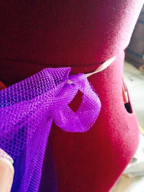 utilicé mi método de tutú en una banda de plata ojete. Yo atar tiras de telas de la gasa a través de los agujeros. No tenga miedo de cortar líneas dentadas, rugosas en los bordes de las tiras porque este vestido de falda iba a dar la ilusión de usar