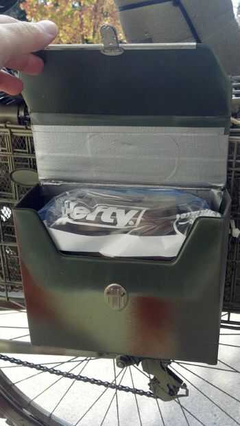 Si te estás preguntando sobre la caja camo pequeña en el lado izquierdo de la parrilla de la bicicleta, tiene que un par de binoculares en una ziplock, naturaleza paseos con mi novia. :) Voy a conseguir un más pequeño, tal como / si no el más poderoso par de binos eventualmente.