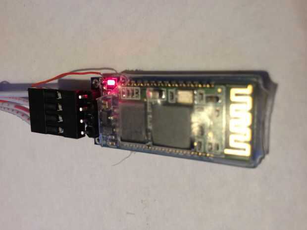 El módulo de puerto serie de JY-MCU Bluetooth Wireless y su cable de conexión (viene con ella)