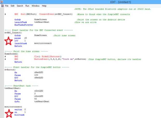 Primero directamente bajo el segundo comando gosub que se escribe: