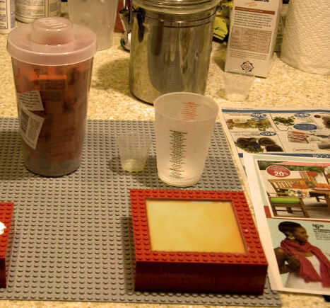 Prefiero usando Legos para construir mis paredes de molde (como se puede ver en la imagen). Los bloques del dispositivo de seguridad firmemente, no se escapan y son más fáciles de montar que cortando y pegando las paredes y base de espuma.