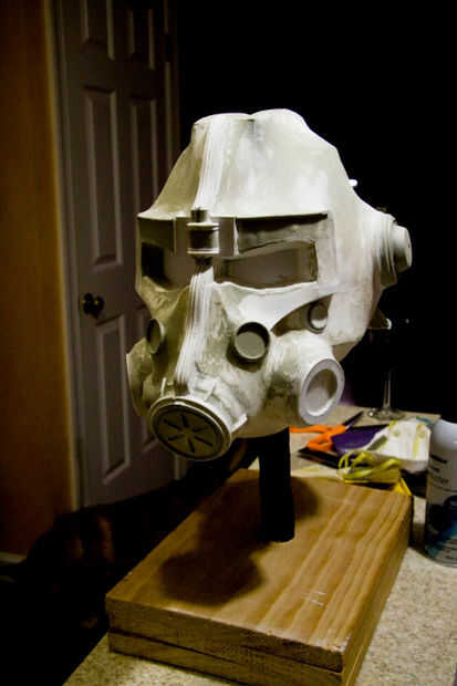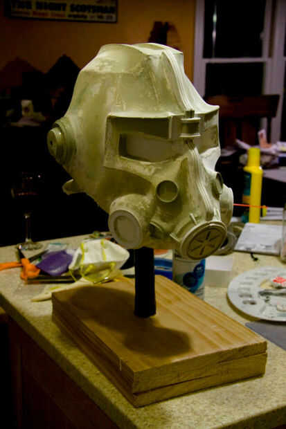 El casco debe ser capaz de descansar en posición vertical. Cortar un tablón de madera (medidas exactas no son importantes) en 3 incluso longitudes y emparedado de juntos. Luego perfore un agujero con un serrucho de 1 pulgada en el centro de la tabla. Esto debe dar cabida a la espiga y brindan una base estable para el casco.