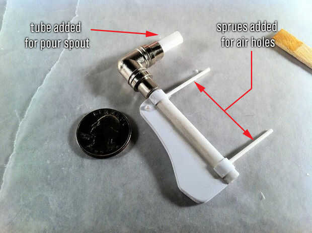 Prefiero formas a partir de un material uniforme solo siempre que sea posible, así que en este caso hice un simple molde parte 2-de que a una parte más sólida del molde. Recuerde, cuando moldeado piezas destinadas a ser sólido proyecta incluir las piezas que crean agujeros de aire en su molde, así como la construcción de un vertedor.