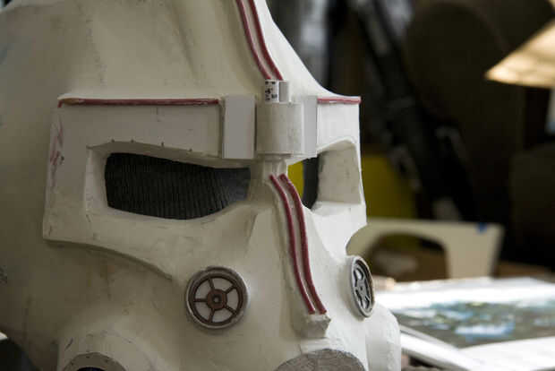 En este punto vamos a añadir algunos acentos para las cejas y canto del centro. Utilicé cable eléctrico rojo (como en la imagen) para mi casco pero la mejor opción es Barras Semiredondas estireno. Estireno es más flexible, más fácil de cortar y fácil de fijar con pegamento. Utilice las barras semiredondas.125 donde ves el cable rojo en mi ejemplo.