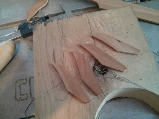 Lijado de las alas puede hacer mucho más fácil si sujetarlos todos juntos, entonces utilice una lijadora de banco para darles forma al mismo tiempo. Una vez creada la forma básica de arena les abajo, individualmente, utilizando papel de grano progresivamente más fino.