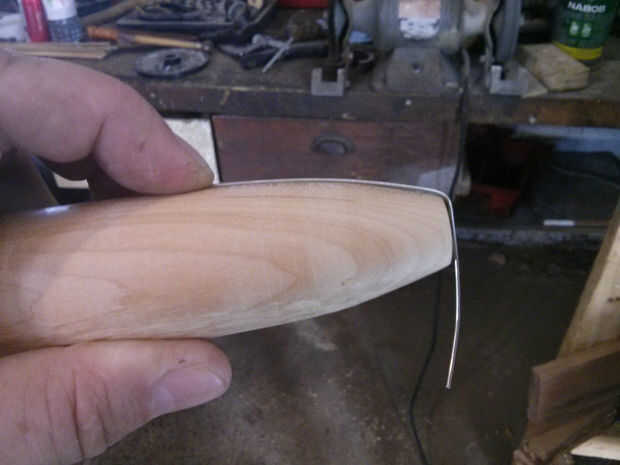 La parte más difícil de crear cuatro alas les es acoplar a la forma del cohete. Un viejo truco que he usado es tomando un trozo de soldadura y doblez a la forma que desea duplicar, luego transcribe a su plantilla. Una vez que has establecido, el resto es fácil. Las alas de la base del cohete en unos 10 grados de ángulo hacia fuera y son 3.25" x largo aproximadamente 1" de ancho. La conexión edge, al cohete es 2" de largo.