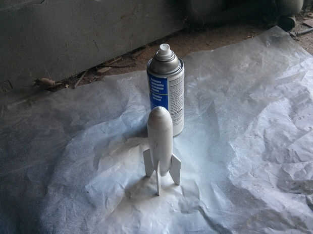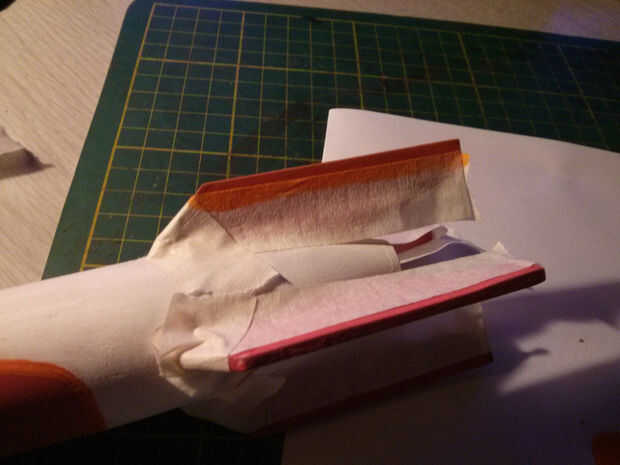 Los colores esenciales del cohete Repconn es rojo para la nariz y las alas y blanco para el cuerpo. Su una buena idea empezar con una buena capa de imprimación antes de aplicar el color para asegurar buena adherencia. Una vez seca la capa base blanca, máscara de las áreas que no desea ser rojo luego aplicar pintura. Si usted consigue un poco de sangrado debajo de la cinta, no te preocupes demasiado ya que se va delineando el rojo con el naranja/amarillo.