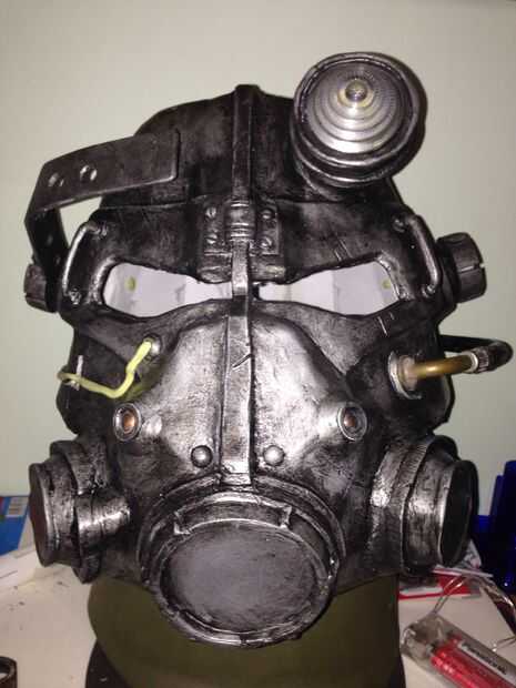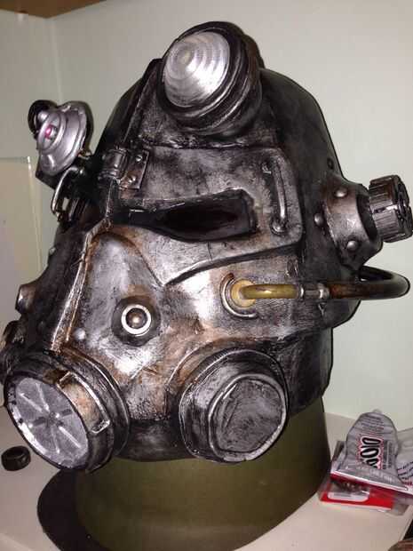 El casco principal se hace bastante, aquí agregué pedacitos y sacudidas para que sea más como el casco de juego, porque realmente no puedo permitirme gastar una fortuna en mis proyectos, he sido ahorrativo, los bits del lado que atornillar son pies de una vieja unidad, el brazo que viene del lado es una regla de metal doblado y formado , el ojo rojo es la parte superior de una vieja lata de aerosol, la tubería lateral es un tubo de la lavadora, hay una pequeño llevó la antorcha en el brazo que he multiputted hasta aspecto viejo y fija con unos pernos encontrados, todo pintado luego con la plata lisa entonces resistida para que coincida con la tapa, luego montado, también he empezado añadiendo los LEDs para poner en la antorcha principal y ojos rojos (los LEDs son una cadena de diez Luz con una batería de Navidad pack todo en uno, todos recogieron y pegué el lugar)