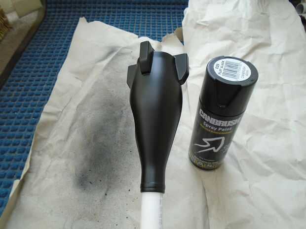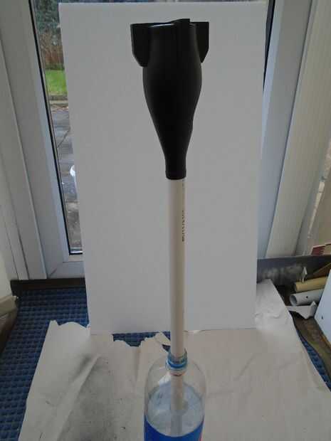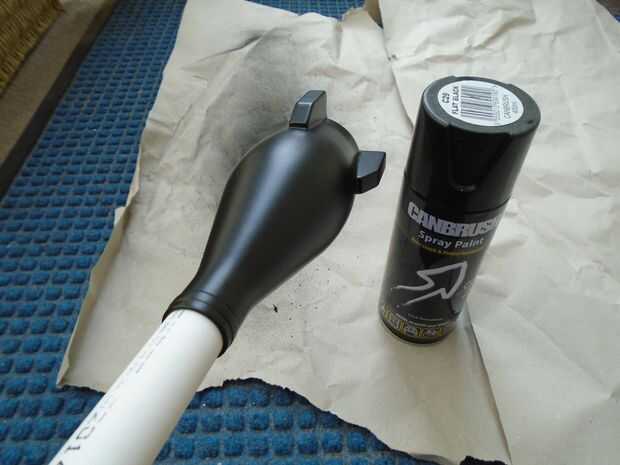 Para la botella, un tubo de PVC o la espiga hace una útil extensión para la botella, además significa que puede pintar toda la superficie sin tener que preocuparse sobre la superficie de contacto; una botella de refresco grande llenada de agua es un buen soporte para colocar el tubo de PVC en cuando esté rociando.