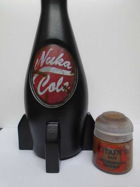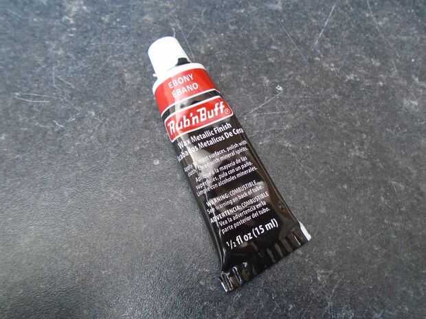 Si quisieras suciedad encima de la botella, así, un aceite pintura a base de color marrón o negra como "Rub'nBuff" sería un gran trabajo, pero yo quería la botella negro limpio, con la tapa de botella y etiqueta sucio; sin embargo desea terminar su botella estéticamente depende de usted.
