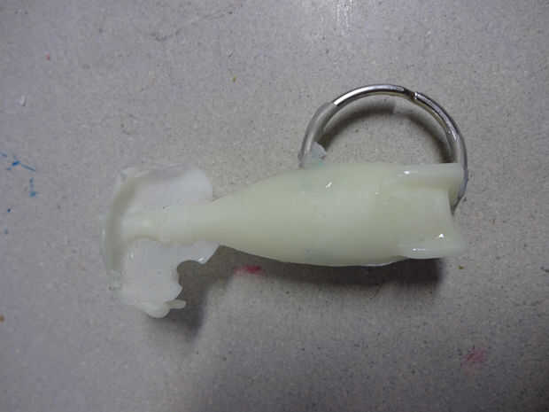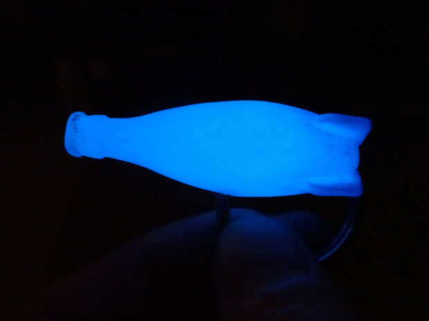 ahora es el momento para una primera prueba de resplandor. ¿Haberla cargado hasta con una lámpara de UV y... salió bastante bien, don´t cosa?