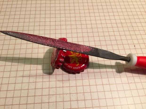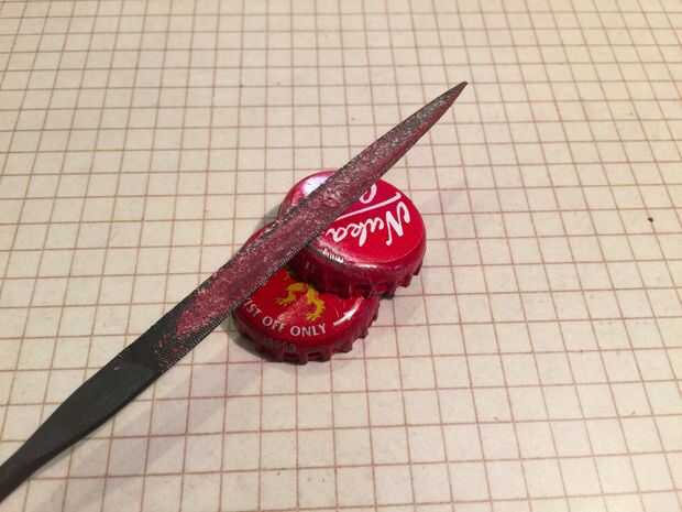 Después de haber presentado varios casquillos se dará cuenta de que el archivo habrá acumulado la pintura y metal. Si dejas esto en el archivo ayudarán a dar el resto de los casquillos y agradable valiente sienten como partes de la pintura y etiqueta engomada de papel desprenderse al archivo y al final encima de las tapas.