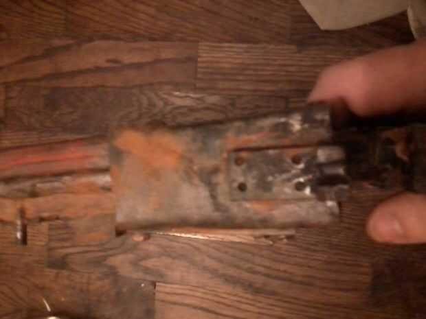 Toma algunos clavos oxidados y agitar en un vaso para quitar moho, terminarás con un moho en polvo. Rozó algunas mod podge en la pistola en lugares donde quería moho que y luego había espolvoreado el moho en la misma. Óxido funciona a menudo de tornillos así que poner un poco por debajo de ellos. También he añadido algunos pintura naranja y marrón para hacer una mirada mugrienta al metal.
