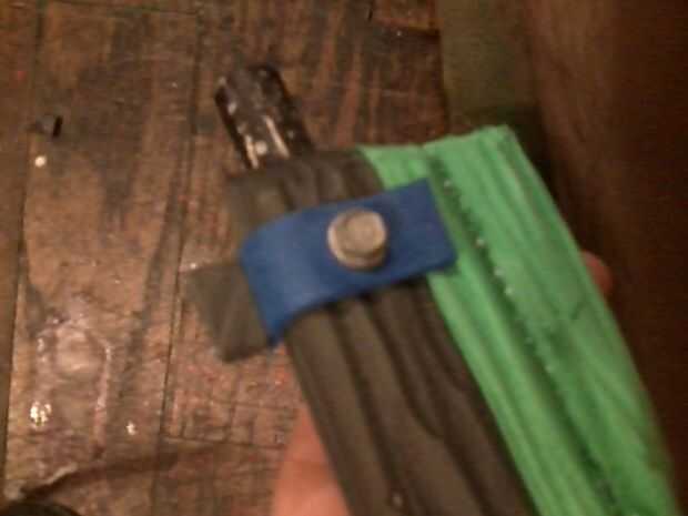 Justo delante de la ranura en el barril me corte un canal pequeño y pegado en un trozo de espiga. La segunda parte de esto también es una forma extraña, pero usted puede mirar las fotos para tener una idea de él. Hay una pieza larga que se encuentra debajo de la espiga y una pieza que tiene 2 tornillos en el mismo. No sé lo que ha significado en el juego, pero se ve limpio. También es la poca "revista" que se encuentra debajo de la ranura, sólo un trozo de espuma con dremeled laterales y algunos agujeros de remache del faux. Puede Agregar el punto de mira ahora. Es una tira pequeña de espuma de artesanía en el exterior del antebrazo con una pequeña longitud de espuma en la parte superior.