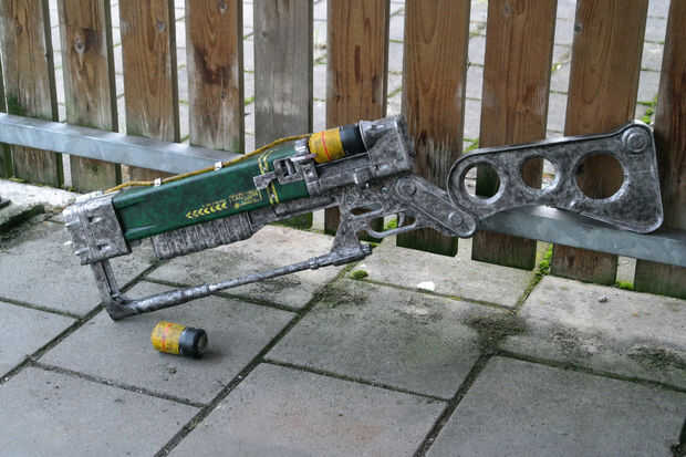 Rifle láser AER9 es posiblemente el objeto más reconocible de la serie Fallout. Incorpora a todo sobre el juego, la sensación de "Mundo del mañana hoy", la idea de que todo va a ser posible en pocos años, una gran guerra que aplican estas mentalidades a armamento.