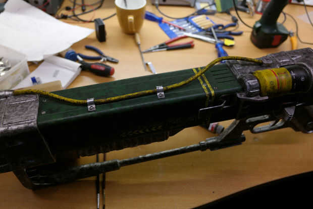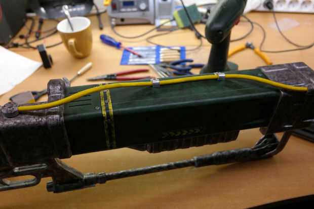 Lo más probable es que el tubo no es el amarillo debe ser, que pintura uso amarillo para hacer el tubo (adivinaron) amarillo. Puede tomar unos pocos abrigos. Después de haber pintado el tubo, utilice la misma técnica usada para el rifle para el tiempo en el tubo.