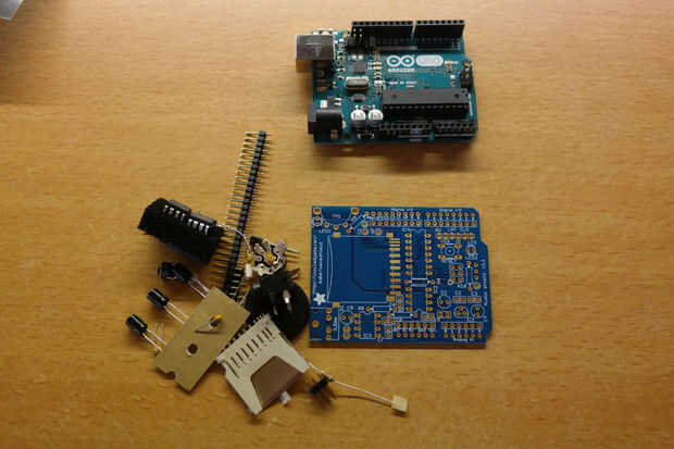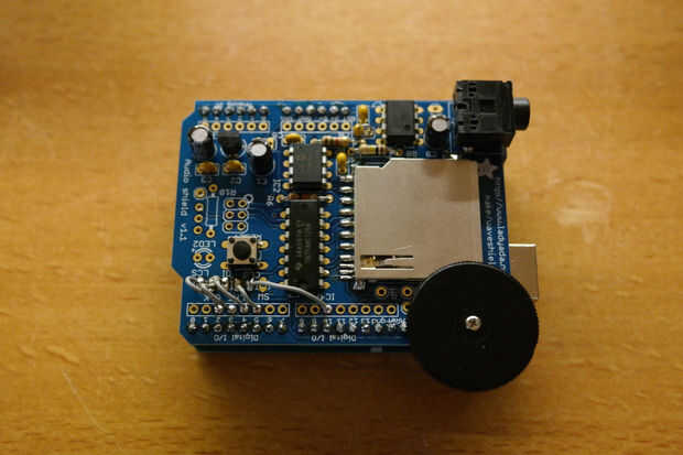 El Waveshield es una manera decente calidad sonora en un Arduino. Cualquier explicación que podría darte sería pobre, por lo que le redirigirá a un tutorial de Adafruit abajo. Mi circuito se hizo del mismo modo que ellos, y cualquier adición es de eso.