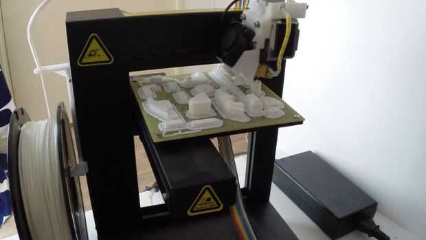 Mis piezas se imprimieron (salvo una parte) en una! más. La excepción es el "Frente del cuerpo AER9" que fue impreso en mi V2 de Mendel. Las piezas fueron impresas en PLA en 0.3mm del espesor de la capa. De esta manera me tomó cerca de 70 horas de impresión 3D. PARA ARRIBA! las impresoras no son conocidas por ser particularmente lento, por lo que dependiendo de su configuración, puede tardar más.