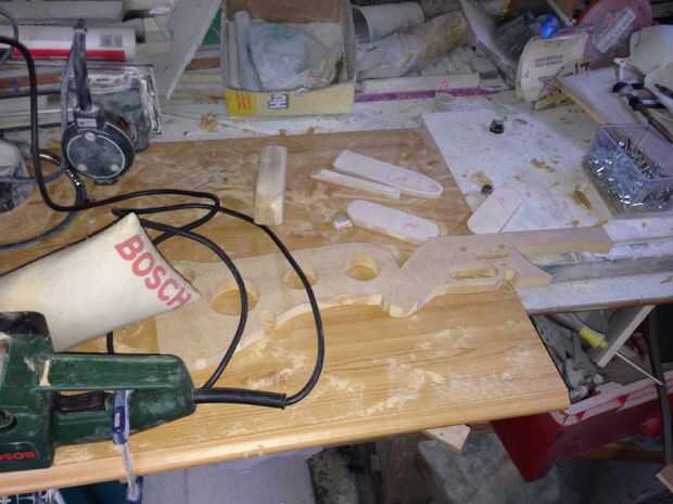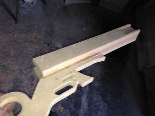 Para que todo en la construcción principal fue marcado hacia fuera en la madera, cámara principal era mdf de 3/4 de pulgada, la acción era el mismo, el detalle adicional fue hecho en la capa de 1/4 de pulgada, corte primero el stock en la sierra, y los orificios de la culata con una sierra de calar, también la cámara principal era cortar 30 pulgadas largo por 3 pulgadas , superior y los lados donde cortados más pequeños para los orificios de ventilación para colocarse en la parte inferior (ventilaciones en 1/4 capas) y la cámara principal debe ser cuadrada, en 30 pulgadas