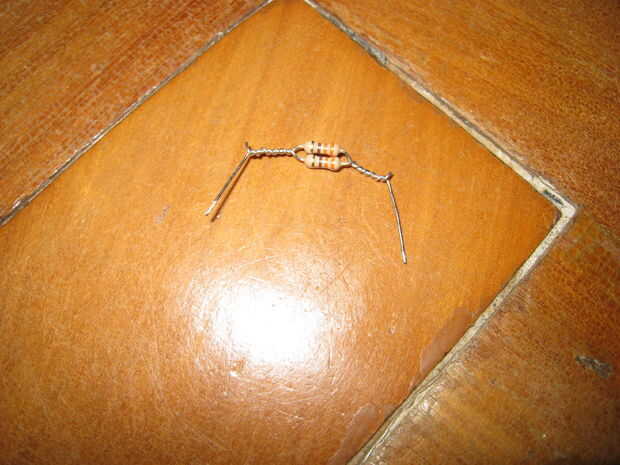 Uno de los cables al final fue quitado, así que para obtener sólo un alambre en cada extremo de la "resistencia equivalente" (resistencia de 165 ohm, de dos resistencias de 330 ohmios).
