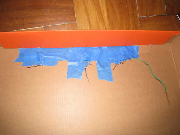 Al final, cortar dos agujeros, donde los cables se inserta y se cortarán por los participantes del juego.